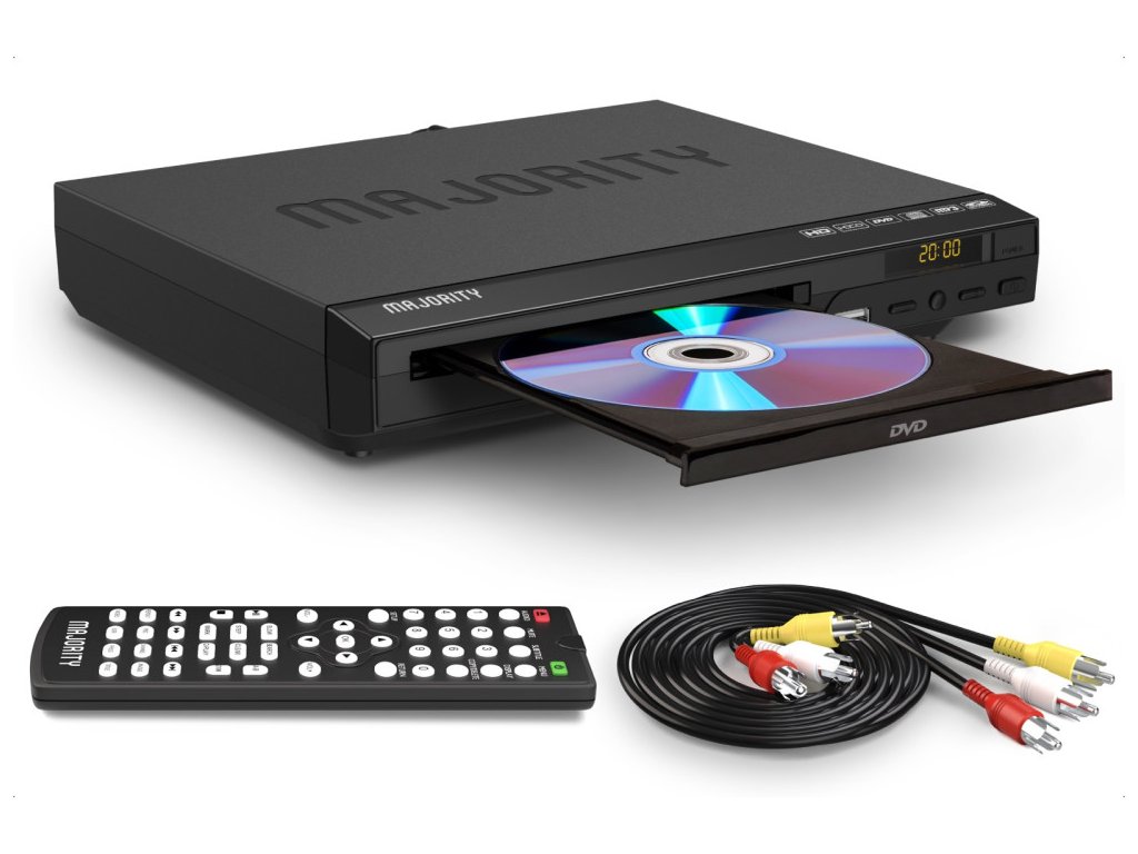 Majority DVD Player EU je kompaktný a spoľahlivý stolný DVD prehrávač s podporou viacerých regiónov, ktorý umožňuje prehrávanie diskov z celého sveta. Zariadenie zvláda rôzne formáty vrátane DVD, DVD-R/RW, CD, CD-R/RW, ako aj digitálne súbory MP3, WMA, AVI, HEVC a JPEG.Prehrávač je vybavený HDMI výstupom pre vysokokvalitné digitálne pripojenie k moderným televízorom a zároveň ponúka aj RCA audio a koaxiálny výstup pre tradičné analógové prepojenie. K dispozícii je tiež USB port na prednom paneli, ktorý umožňuje prehrávať multimediálny obsah priamo z USB kľúča (maximálna kapacita 32 GB).LED displej na čelnom paneli zobrazuje informácie o prehrávaní a v balení sa nachádza aj praktický diaľkový ovládač, ktorý zabezpečuje pohodlnú obsluhu. Maximálne rozlíšenie prehrávaného videa cez USB je 720×576 (PAL) alebo 720×480 (NTSC).Vďaka kompaktným rozmerom cca 225 × 45 × 190 mm a hmotnosti len okolo 700 g je zariadenie ideálne pre každodenné používanie doma, v kancelárii či na chate. Majority DVD Player EU predstavuje ideálne riešenie pre každého, kto hľadá jednoduchý, univerzálny a cenovo dostupný prehrávač pre fyzické aj digitálne médiá.Dodatočné parametre