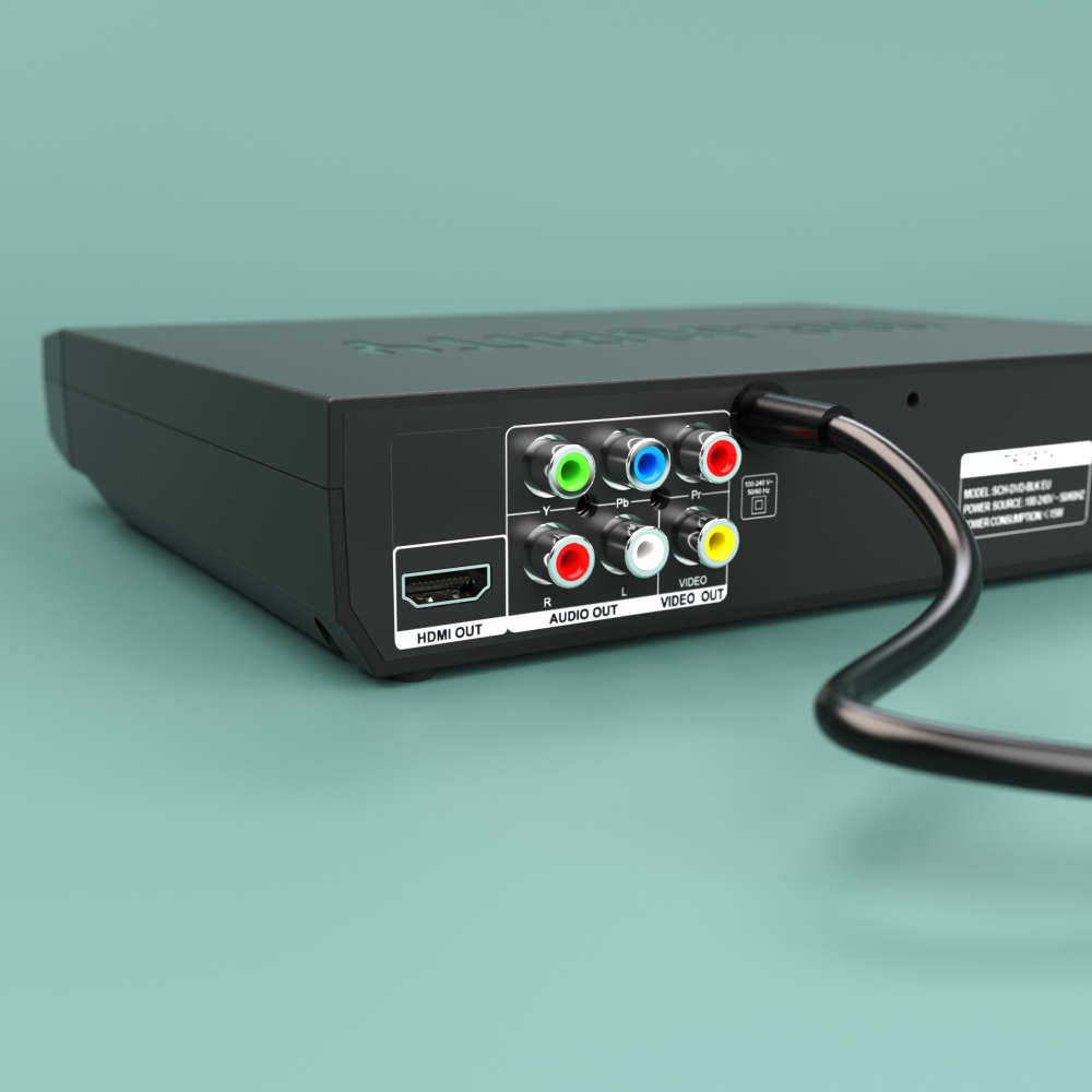 Prehrávač je vybavený HDMI výstupom pre vysokokvalitné digitálne pripojenie k moderným televízorom a zároveň ponúka aj RCA audio a koaxiálny výstup pre tradičné analógové prepojenie. K dispozícii je tiež USB port na prednom paneli, ktorý umožňuje prehrávať multimediálny obsah priamo z USB kľúča (maximálna kapacita 32 GB).