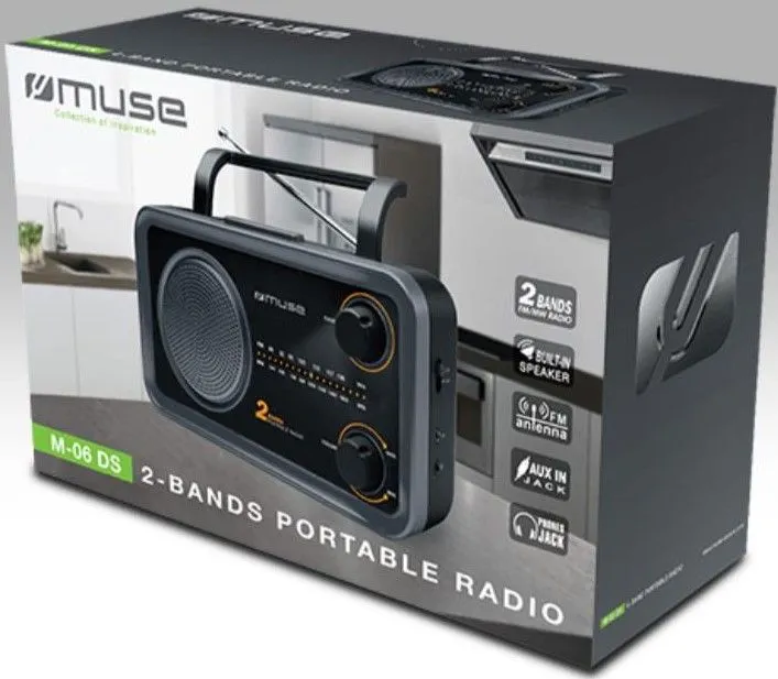 MUSE M-06DS je analógový rádioprijímač s atraktívnym dizajnom v čiernej farbe. Podporuje 2 pásma: FM/AM, disponuje linkovým vstupom AUX, teleskopickou anténou, napájaním 230V alebo 4x 1.5VC / R14 batérie (nie sú súčasťou balenia).