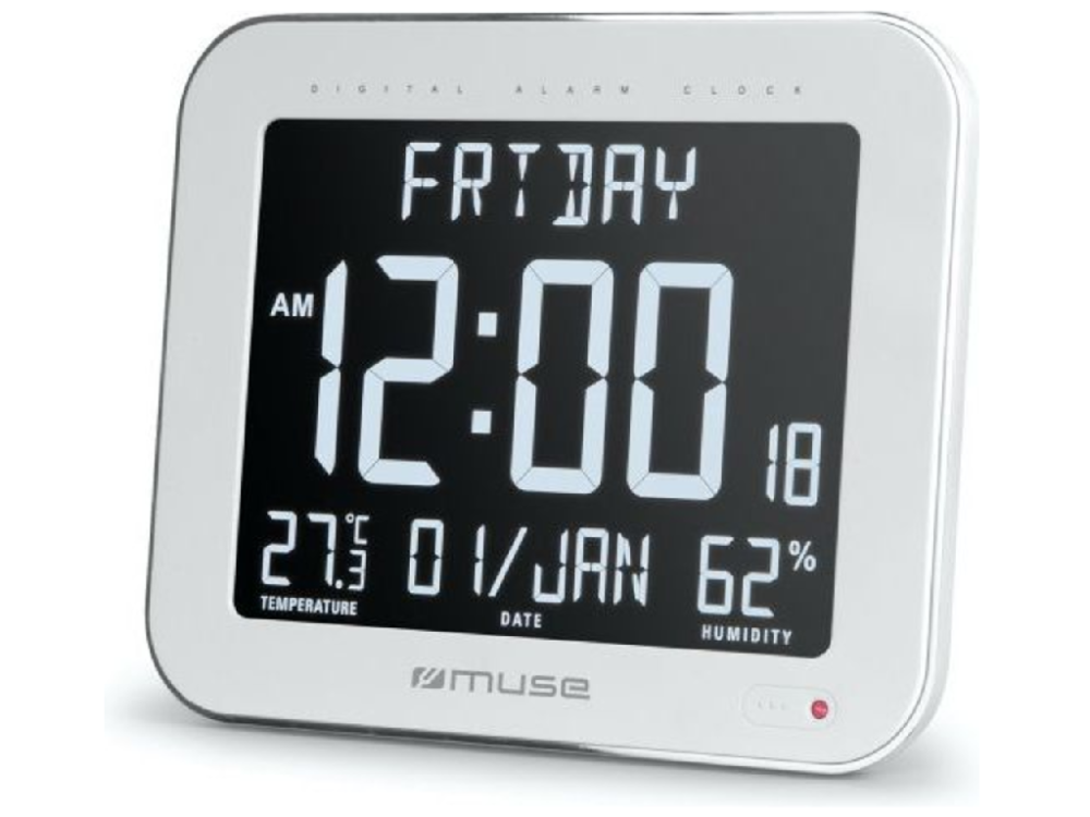 MUSE M-090WMC sú praktické digitálne hodiny s moderným LCD displejom, ktoré ponúkajú prehľadné zobrazenie času a zároveň funkciu vnútorného teplomeru. Vďaka čistému a kompaktnému dizajnu sa hodia do každej domácnosti, kancelárie či izby, kde poskytujú základné informácie pre každodenný komfort. Displej zobrazuje čas v 12- alebo 24-hodinovom formáte a dopĺňa ho aktuálna teplota v miestnosti, čo umožňuje lepšiu kontrolu vnútorného prostredia. Hodiny sú ideálne na postavenie na stôl alebo poličku a ovládajú sa jednoducho pomocou tlačidiel na zadnej strane. Napájanie je zabezpečené batériami, vďaka čomu fungujú nezávisle od elektrickej siete. MUSE M-090WMC je spoľahlivý a elegantný doplnok pre každého, kto ocení kombináciu času a teploty v jednom zariadení. V balení sa nachádzajú hodiny a používateľský návod.