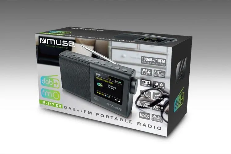 Moderný prenosný rádioprijímač Muse M-117 DB v čiernom prevedení vďaka svojim kompaktným rozmerom a minimalistickému dizajnu poľahky zapasuje do každej izby vo vašej domácnosti. Špecifikom sú DAB/DAB+ a FM PLL tunery s možnosťou uloženia 20 predvolených staníc (10 FM + 10 DAB), ktoré vám umožnia vychutnať si obľúbené rozhlasové vysielanie, a všetky dôležité informácie sa zobrazia na prehľadnom 2,8“ (7 cm) TFT LCD displeji so stmievačom. Zariadenie disponuje výstupným výkonom 3 W, funkciou prezentácie, duálnym alarmom, pri ktorom nechýbajú ani funkcie Sleep a Snooze, aby ste si mohli ráno ešte trochu pospať, Aux-In jack konektorom (3,5 mm) či konektorom pre telefón.