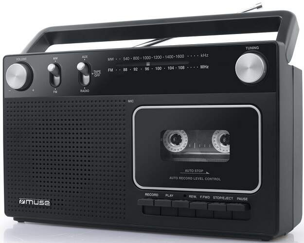 Prenosný rádioprehrávač Muse M-152 RC v čiernom prevedení je vhodný pre všetkých klasikov, ktorí vyhľadávajú funkčnosť a jednoduchosť. Prehrávač dokáže prehrávať hudbu z klasickej kazety aj z FM/ MW rádia, ktorého príjem signálu je podporovaný teleskopickou anténou. Ak si budete chcieť prehrať playlist uložený na externom zariadení, môžete ho pripojiť cez Aux-In. Zariadenie disponuje funkciou Autostop, rotačným ovládaním hlasitosti a vstavaným mikrofónom. O skvelý hudobný výkon sa postará zabudovaný 3“ reproduktor. Vďaka možnosti napájania batériami, nízkej hmotnosti, strednej veľkosti a rukoväti je to prenosná hudobná stanica, ktorú si so sebou môžete zobrať na cesty.
