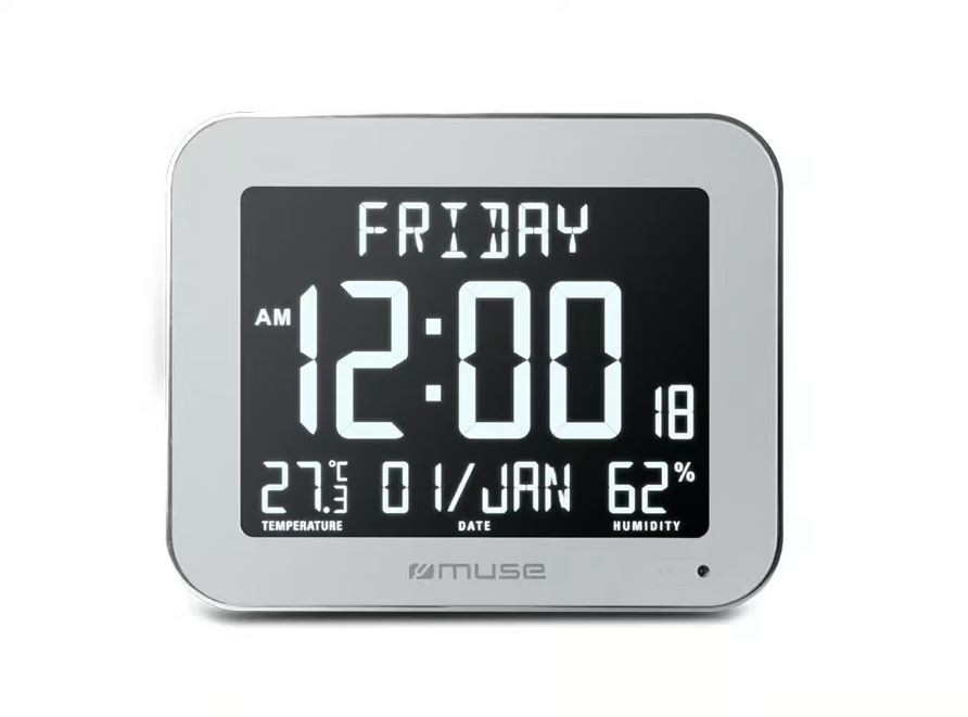 MUSE M-160WMC sú elegantné a funkčné nástenné LCD hodiny, ktoré kombinujú jednoduchý dizajn s praktickými funkciami pre každodenné použitie doma či v kancelárii. Čisté LCD zobrazenie času v 12- alebo 24-hodinovom režime je prehľadné a ľahko čitateľné, a zohľadne aj aktuálnu teplotu v miestnosti, ktorú ukazujú zabudované teplomery.