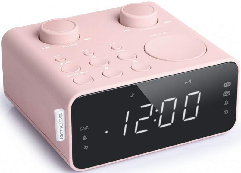Moderný rádiobudík Muse M-17 CPK v ružovom farebnom prevedení vás prvotne zaujme svojím elegantným dizajnom, ktorý zapasuje do každej domácnosti. Všetky dôležité informácie sú zobrazované na prehľadnom 0,9“ bielom LCD displeji s 3 stupňami stmievania (vysoká/nízka/vypnutá). O prísun obľúbených rozhlasových relácií sa postará FM a MW PLL rádio so 6 predvolenými stanicami (3 FM + 3 MW), no ak si budete chcieť prehrať svoj playlist uložený na externom zariadení, môžete ho jednoducho pripojiť cez Aux-In konektor. Prebudiť vás môže rozhlasové vysielanie alebo klasický bzučiak, stačí si vybrať. Zariadenie disponuje dvojitým alarmom, 24-hodinovým formátom času či funkciami ako Sleep, Snooze a Nap, ak by ste si chceli ráno ešte trochu pospať.