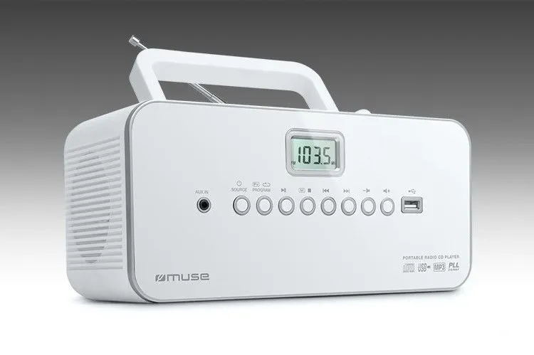 Štýlový rádioprehrávač Muse M-28 RDW v neutrálnej šedej farbe vás dostane svojimi funkciami, ktoré sú ukryté v kompaktnom dizajnovom tele. Dokáže prehrávať rôzne druhy diskov (CD, CD-R, CD-RW) a disponuje FM / MW PLL tunerom s 20 + 10 predvolenými stanicami. Informácie sú zobrazované na čitateľnom LCD displeji. Ponúka celkový výkon 6 W, ktorý je produkovaný z 2 reproduktorov. Súčasťou tohto modelu je aj opakovacia funkcia one/all, FM otočná anténa, AUX konektor či praktický USB vstup. Pýši sa veľmi kompaktnými rozmermi (26 x 13 x 17 cm) a nízkou hmotnosťou (1,4 kg).