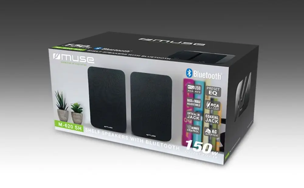 Pod názvom MUSE M-620 SH sa skrýva dvojica aktívnych reproduktorov, ktoré u vás doma zastrešia všetko, čo sa točí okolo počúvania hudby a hovoreného slova. Ide totiž o modernú zostavu, ktorá ponúka celý rad možností. S kompatibilným zdrojom zvuku ju môžete prepojiť pomocou celého radu rozhraní - k dispozícii tu máte o ptický vstup, k oaxiálny konektor aj rozhranie RCA. Aby toho však nebolo málo, tiež môžete využívať vstavaný USB port na prehrávanie MP3 trackov z flashky a technológiu Bluetooth, ktorá slúži k bezdrôtovému streamingu zvuku z chytrého mobilného telefónu či iného podporovaného zariadenia.Kvalitný zvuk vám táto zostava reproduktorov zaistí vďaka výkonu 150 W. Samozrejmosťou je tu pritom aj možnosť flexibilného nastavenia hlasitosti, výšok a basov. A praktické je aj diaľkové ovládanie, ktoré je súčasťou základného balenia.