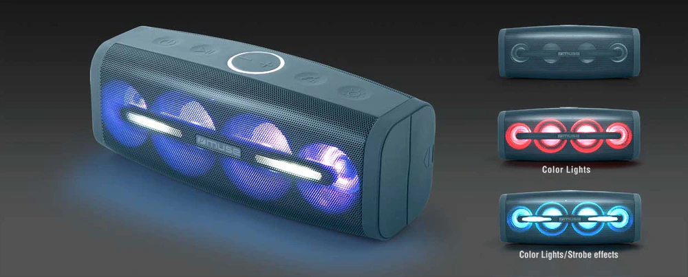 Štýlový bezdrôtový reproduktor Muse M-830 DJ v modrom farebnom prevedení vás príjemne prekvapí množstvom funkcií, ktoré sa ukrývajú v kompaktnom tele. Na konektivitu slúži NFC (funkcia automatického párovania) a Bluetooth pre jednoduché streamovanie vašich obľúbených skladieb zo smartfónov či tabletov. Tóny budú plynúť do priestoru so sympatickým výkonom 50 W a s určitosťou potešia aj farebné svetlá a stroboskopické efekty pre ešte lepší zážitok z hudby. Zariadenie disponuje odolnosťou proti striekajúcej vode IPX4, hands-free (pre jednoduché vybavovanie telefonátov), stereo párovaním, Aux-In vstupom, USB vstupom pre napájanie externých zariadení, LED indikátormi či prehľadnými ovládacími tlačidlami.