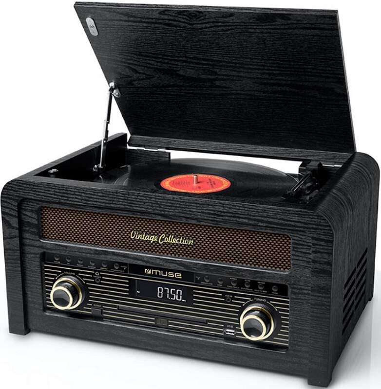 Retro rádio s gramofónom Muse MT-115 W v atraktívnom vintage dizajne ponúka prehrávanie platní a integrované FM rádio s digitálnym ladením a 30 predvoľbami. Vašu obľúbenú hudbu prehrá aj z externého zdroja cez Aux-In alebo bezdrôtovo pomocou Bluetooth zo smartfónu alebo tabletu. Piesne z CD prehrávača, rádia, gramofónu či externého zdroja dokáže nahrať na USB kľúč do formátu MP3 a potom ich prehrávať. Predná časť s moderným dizajnom a LED displejom obsahuje gombíky a tlačidlá na ovládanie všetkých funkcií. Tóny budú plynúť do priestoru z dvoch reproduktorov s celkovým výkonom 20 W. Tri rýchlosti gramofónu 33/45/78 ot./min. umožnia prehrávať aj staršie platne.