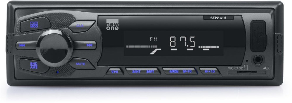 Autorádio bez CD mechaniky NEW ONE AR270 môže nahradiť vaše pôvodné rádio v aute. Okrem príjmu staníc v pásme FM umožní tiež prehrávanie hudby vo formáte MP3 z USB kľúča alebo pamäťovej micro SD karty. K dispozícii je AUX vstup pre pripojenie MP3 prehrávača alebo mobilu s autorádiom prostredníctvom 3,5 mm audio kábla. Do vnútornej pamäte si môžete uložiť až 18 predvolieb staníc, maximálny výkon zosilňovačov je 4 x 15 W. Napájacie napätie je v rozsahu 11 - 16 V.