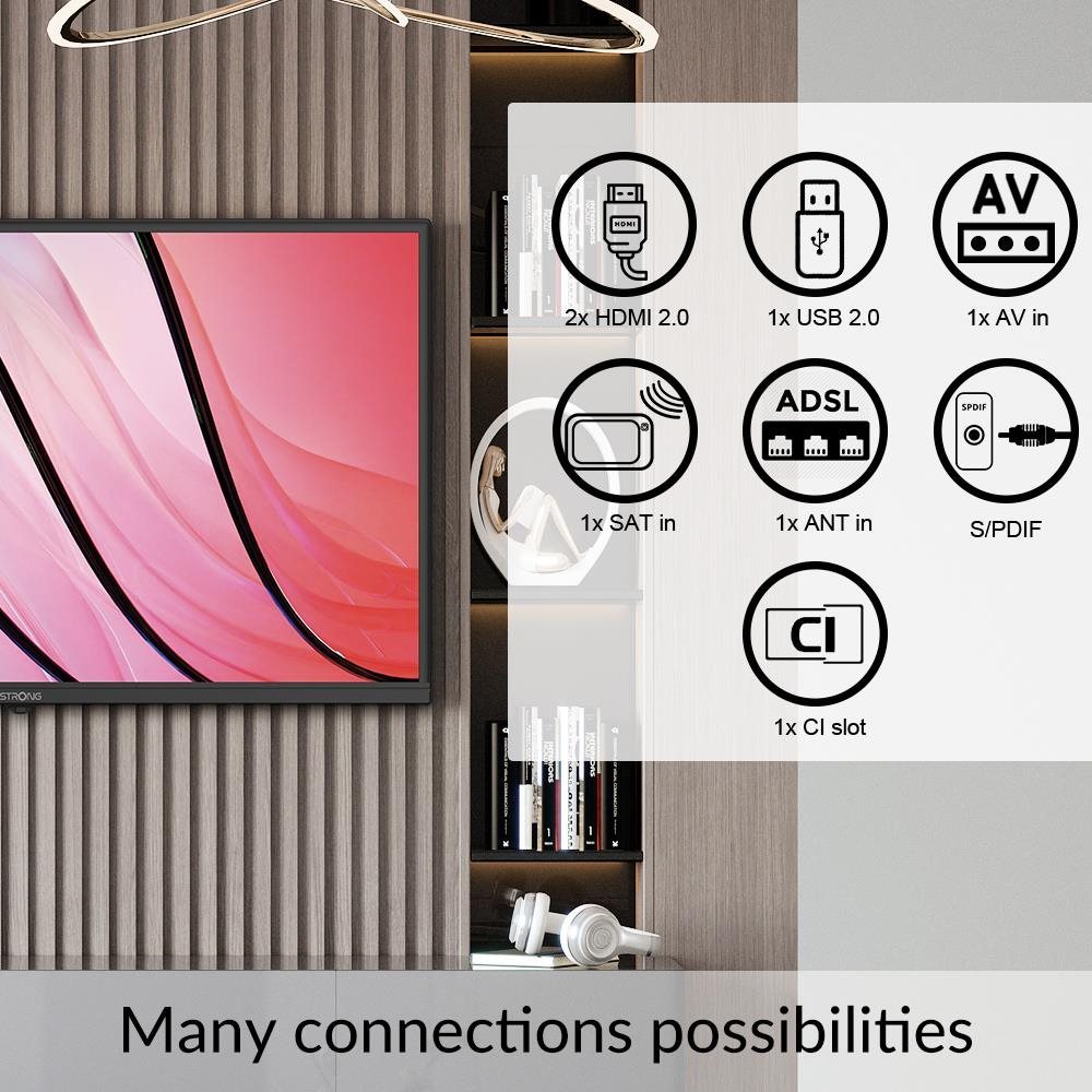 Túžite prežiť doma rovnakú atmosféru, ktorú zažívate v kine? Potom by mohol byť trefou do čierneho televízor STRONG. Vychutnajte si úžasné obrazové zážitky vďaka technológii LCD LED. Veľkú radosť budú mať aj priaznivci rýchlych scén vďaka 50 / 60Hz obnovovacej frekvencii panela. Fantastický obraz je sprevádzaný ohromujúcim zvukom v podaní 10W reproduktorov. Vzhľad televízora navyše doplní čierna farba. Na montáž televízora na stenu je vhodné využiť držiak VESA s rozmermi 200×200 mm. Diaľkový ovládač nájdete v balení.