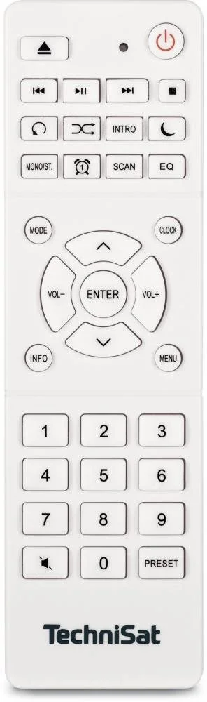 Rádio TECHNISAT je prenosné zariadenie, ktoré zaistí pokojné počúvanie rozhlasovej stanice. Obsah na CD nosiči otvorí zabudovaná mechanika. Medzi podporované formáty patrí AAC, MP3, WAV a WMA. Prístroj má výkon 10 W. Vstavané tunery si poradia s vysielaním DAB+, FM a RDS. Funkcia RDS značí, že prístroj dokáže ukázať informácie o práve ladenej stanici. Rádio TECHNISAT sľubuje možnosť nastaviť celkom 40 predvolieb zvolených staníc. Na jednoduchšiu obsluhu je vo výbave rádia dostatočne prehľadný displej. Naozaj užitočné je zobrazenie času. Praktická funkcia automatického ladenia nastaví všetky dostupné stanice. K pohodlnému ovládaniu rádia prispieva pribalené diaľkové ovládanie. O čo najpríjemnejší pocit z počúvania sa postará bohatá výbava rádia. Počúvať hudbu cez slúchadlá umožní povinný 3,5 mm konektor. Nie ste obmedzení len na obyčajné vysielanie. S pričinením vstupu AUX 3,5 mm možno zapojiť napríklad MP3 prehrávač. Šikovný USB konektor načíta hudbu nahranú na prenosnom flash disku. O bezdrôtové prehrávanie sa postará používateľsky prívetivé Bluetooth rozhranie. Medzi podporované formáty patrí AAC, MP3, WAV a WMA. Rádio TECHNISAT dosahuje rozmery 120 × 350 × 210 mm (v × š × h). Na doplnenie už aj tak vydareného vzhľadu bola zvolená biela farba. Vlastnosti: Rádio TECHNISAT disponuje tunerom na naladenie DAB+, FM a RDS. Zobrazí informácie o práve ladenej stanici. K obľúbeným funkciám patrí automatické ladenie. Pohodlnú obsluhu zaisťuje diaľkové ovládanie. Potrebné informácie sprostredkuje čitateľný displej. K dobrým funkciám patrí zobrazovanie času. Toto rádio dovolí využiť celkom 40 nastaviteľných predvolieb pre stanice. Napájanie: zo siete. Klasické rádio si určite každý zamiluje. Má vstavanú funkciu budíka. Rádio TECHNISAT má výkon 10 W. Konektivita: S Bluetooth. Ako zdroj na prehrávanie môže poslúžiť CD a USB flash disk. Možno sa spoľahnúť na podporu formátu AAC, MP3, WAV a WMA. Balenie tvorí diaľkové ovládanie.